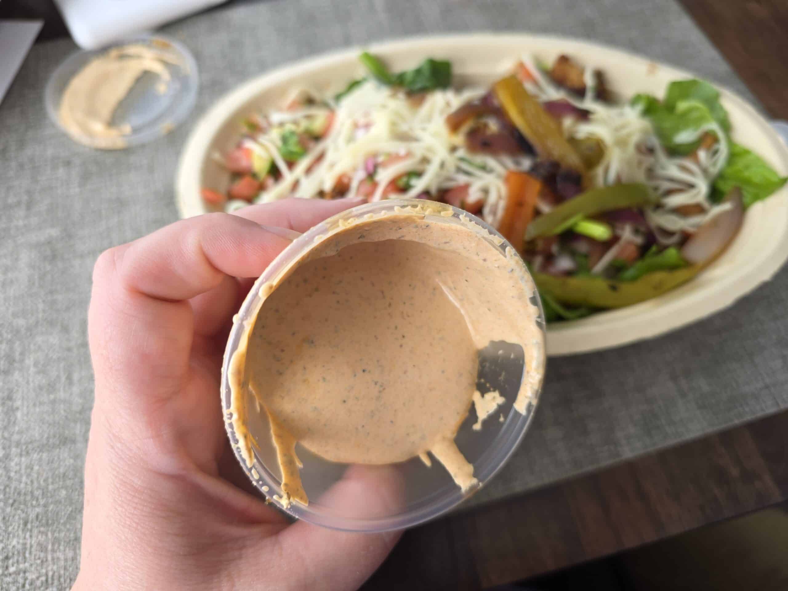 Okay, so I gave Chipotle’s ranch a shot. And… I have questions. First of all: why is it so thick? Like, not “creamy and dreamy” thick. More like, “did someone just hand me a tub of spicy sour cream?” It refused to spread across my salad like it was personally offended by romaine.