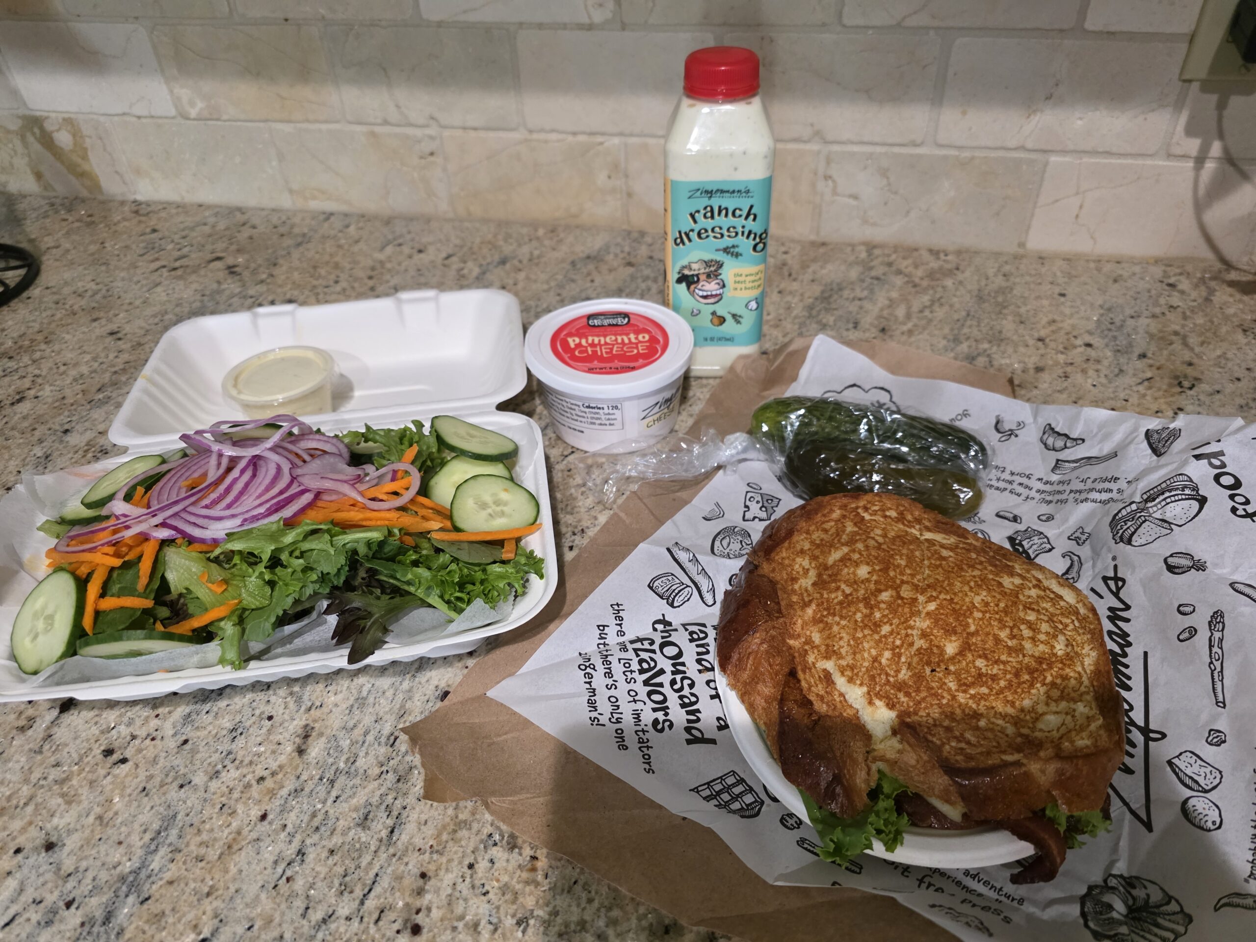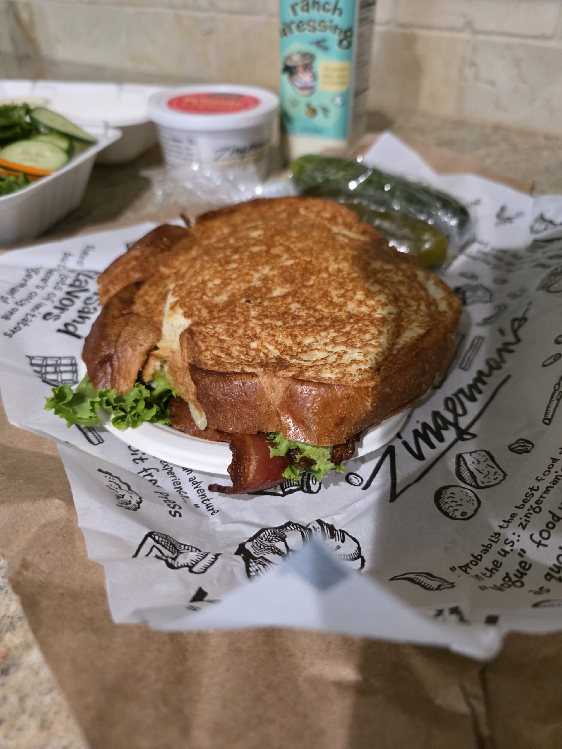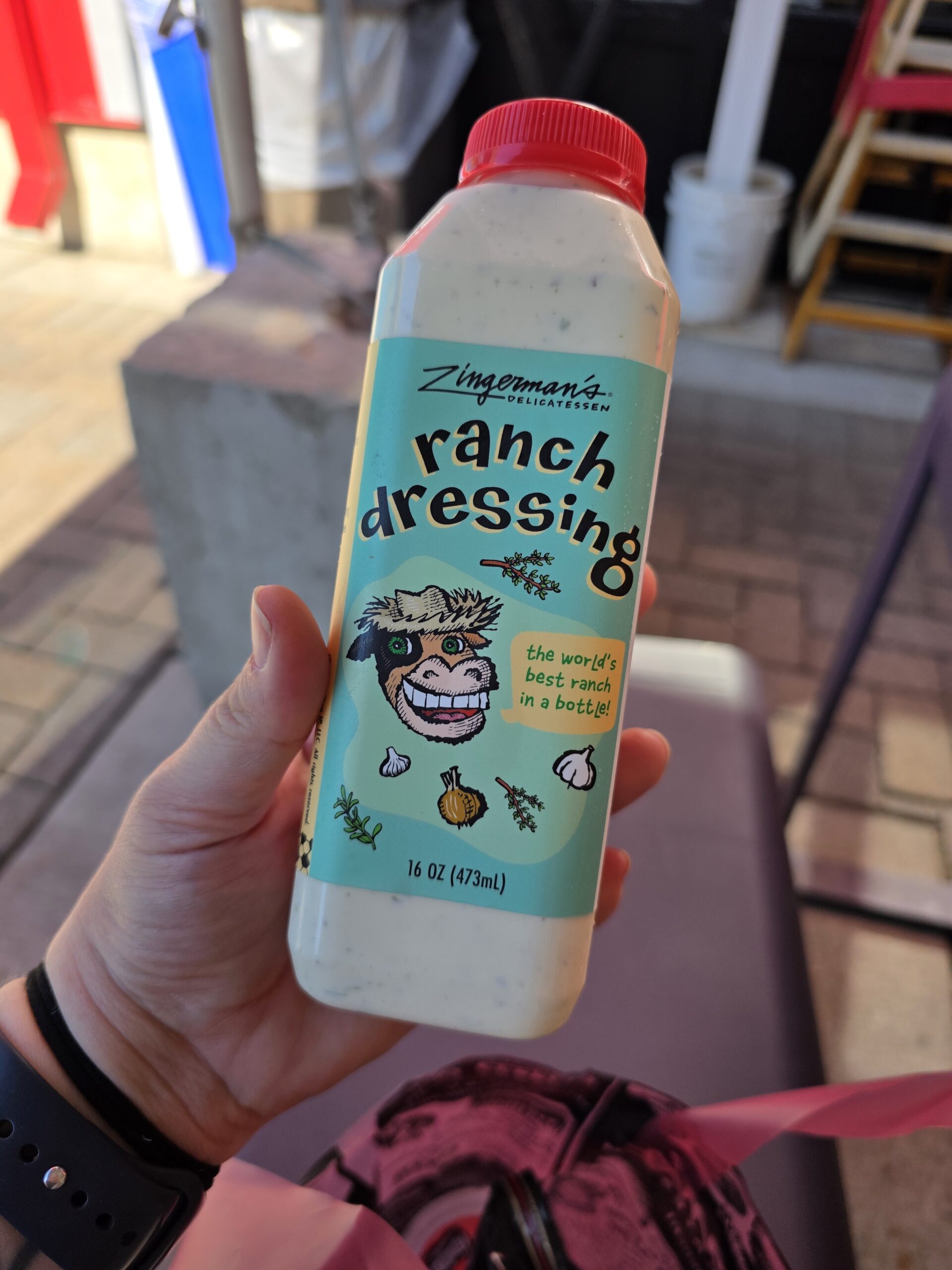I cracked open a container while I waited for my sandwich and salad and dipped some pretzels like the classy ranch connoisseur I am. First impression: it smells like it means business. That herb-forward flavor comes through immediately: tarragon, rosemary, and thyme (yes, I read the bottle like a true ranchologist). It’s earthy, unique, and definitely homemade.